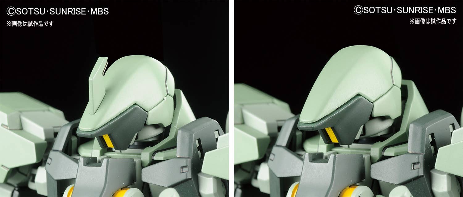 Mô hình HG 1/144 này cho phép bạn lắp theo hai kiểu khác nhau, một dạng Mobile Suit của đội trưởng có sừng và một dạng thường không có sừng. Buồng lái ở phần đầu có thể mở, và sản phẩm đi kèm đầy đủ vũ khí cơ bản.